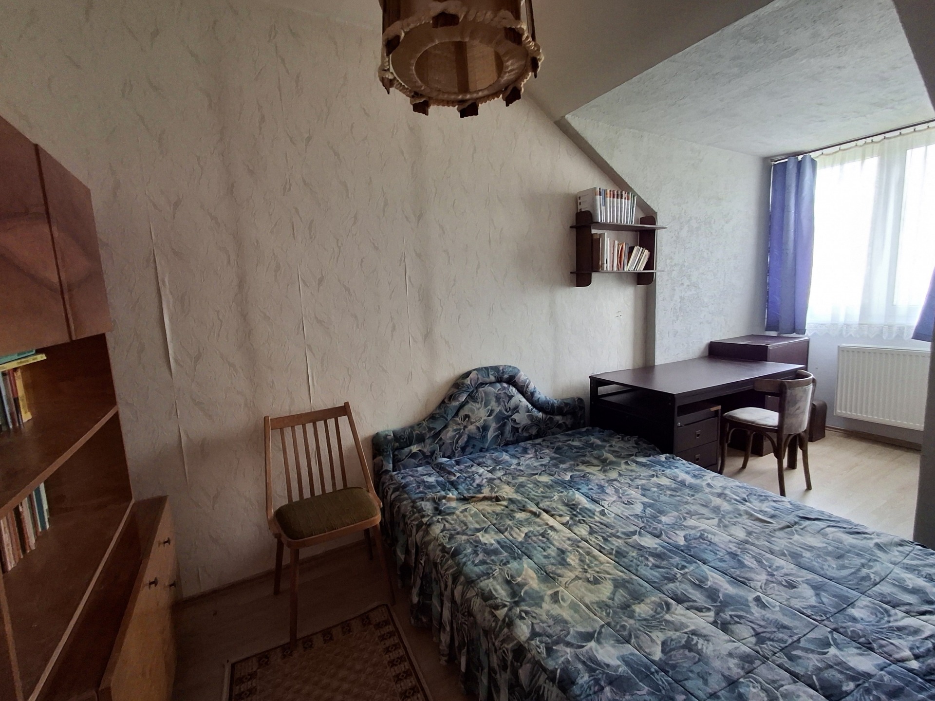 A tetőtér beépítésével utólag kialakítottak egy plusz szobát.
